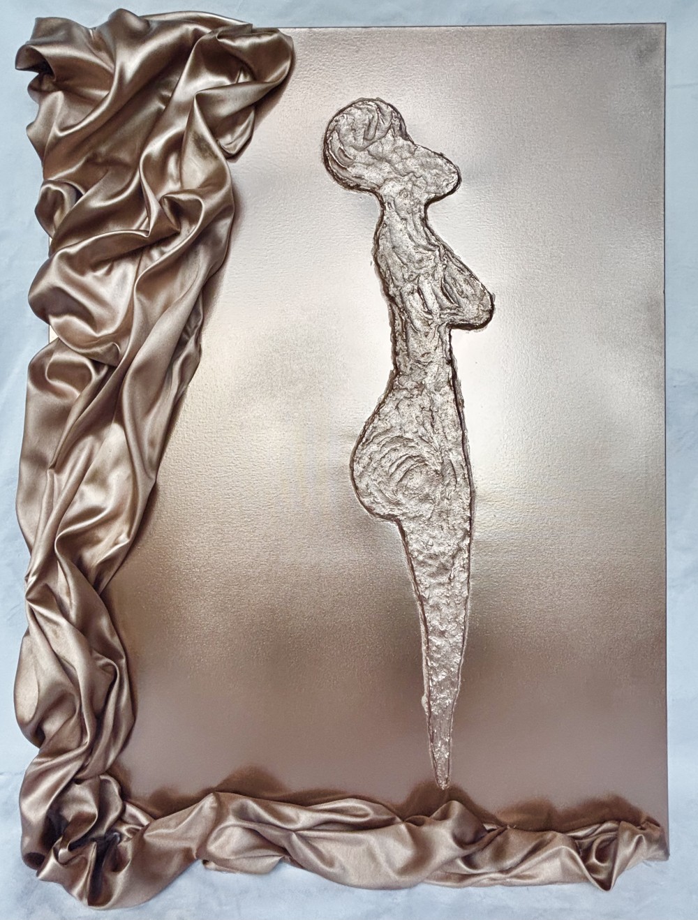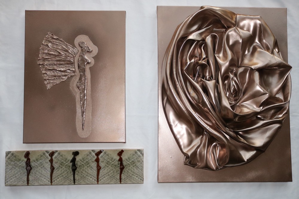 Three mixed-media, sculpted canvas works are submitted for hanging wall display. As shown in the images, from top to bottom to right...
